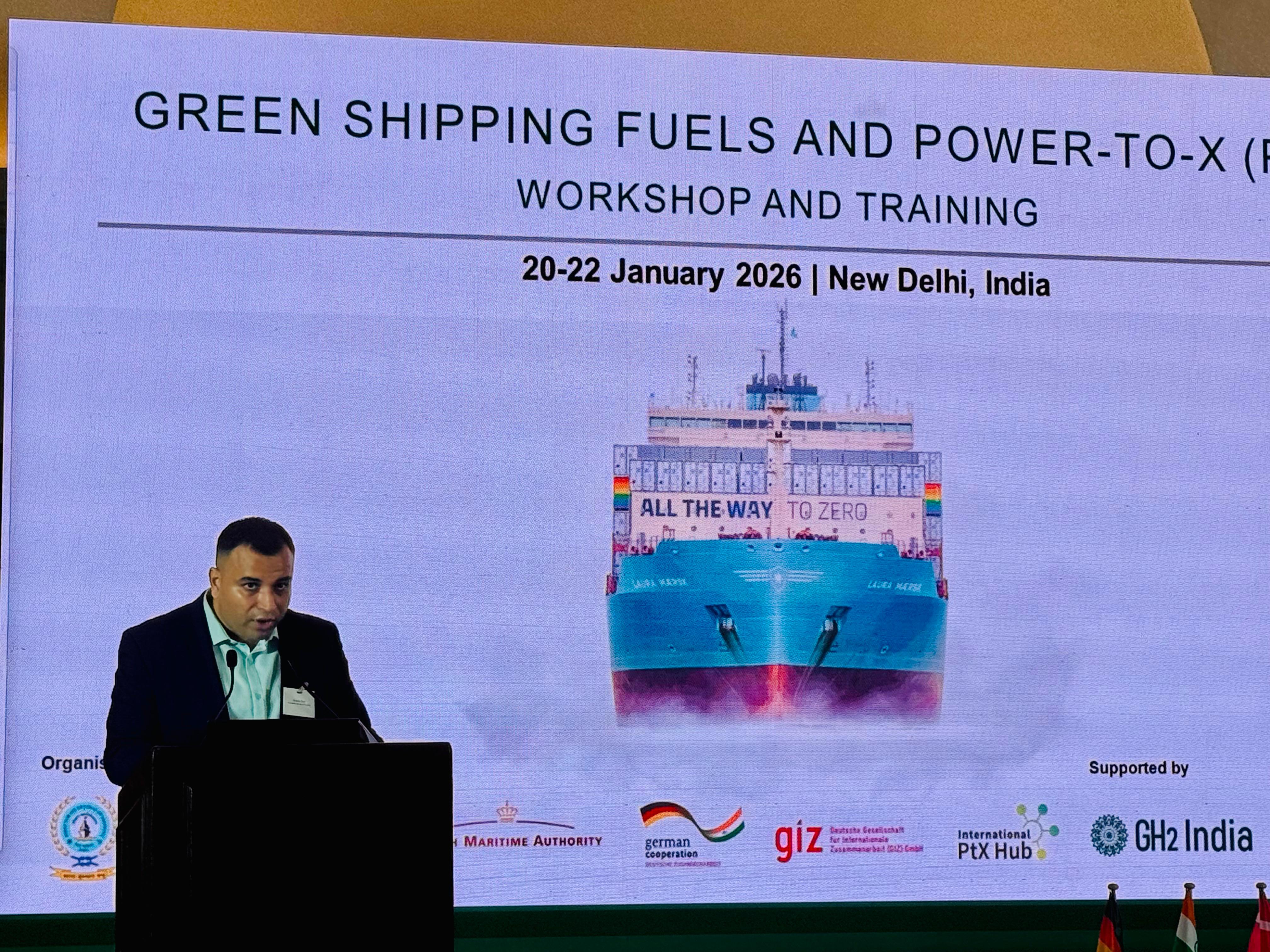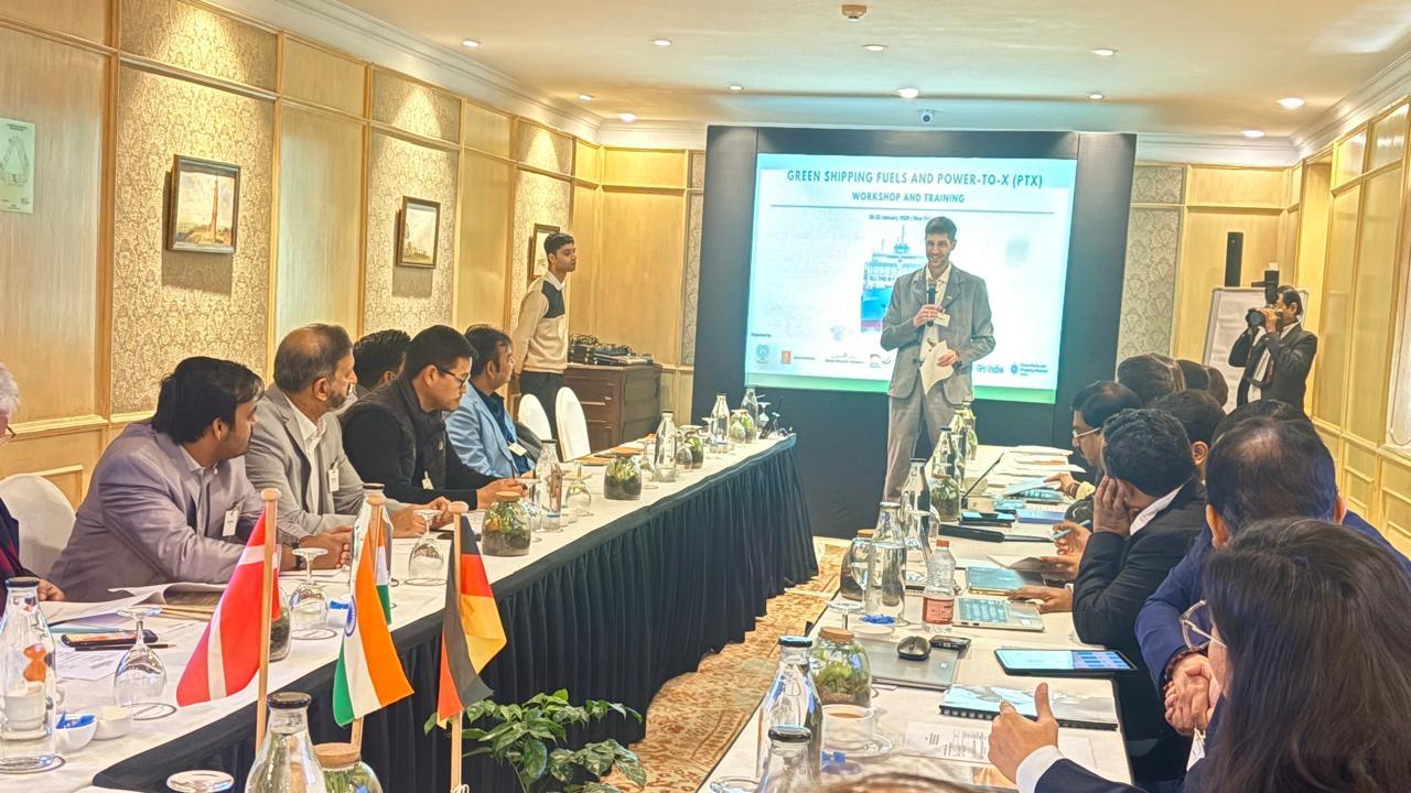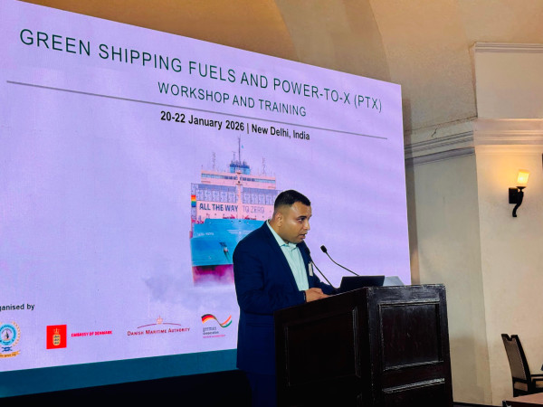 The Directorate General of Shipping participated in the Green Shipping Fuels and Power-to-X (PtX) Workshop and Training held from 20–22 January 2026 at The Taj Ambassador Hotel, New Delhi, alongside key national and international stakeholders including MNRE, Danish Maritime Authority, GIZ India, the Royal Embassy of Denmark, Danish Energy Agency, GH2 India and TERI (NCoEGPS). The three-day programme focused on PtX fuel pathways, maritime decarbonisation strategies, IMO lifecycle assessment guidelines, green fuel certification frameworks and enabling port infrastructure for green shipping corridors. DGS was represented by Shri Pravin Kapale, Engineer and Ship Surveyor-cum-Deputy Director General, Shri Pravin Roy, Engineer and Ship Surveyor-cum-Deputy Director General and Shri Devarshi Datta, Consultant (SEEED–Engineering), with presentations delivered on the National Green Shipping Policy (NGSP) outlining India’s regulatory preparedness and strategic roadmap for advancing sustainable and alternate marine fuels.