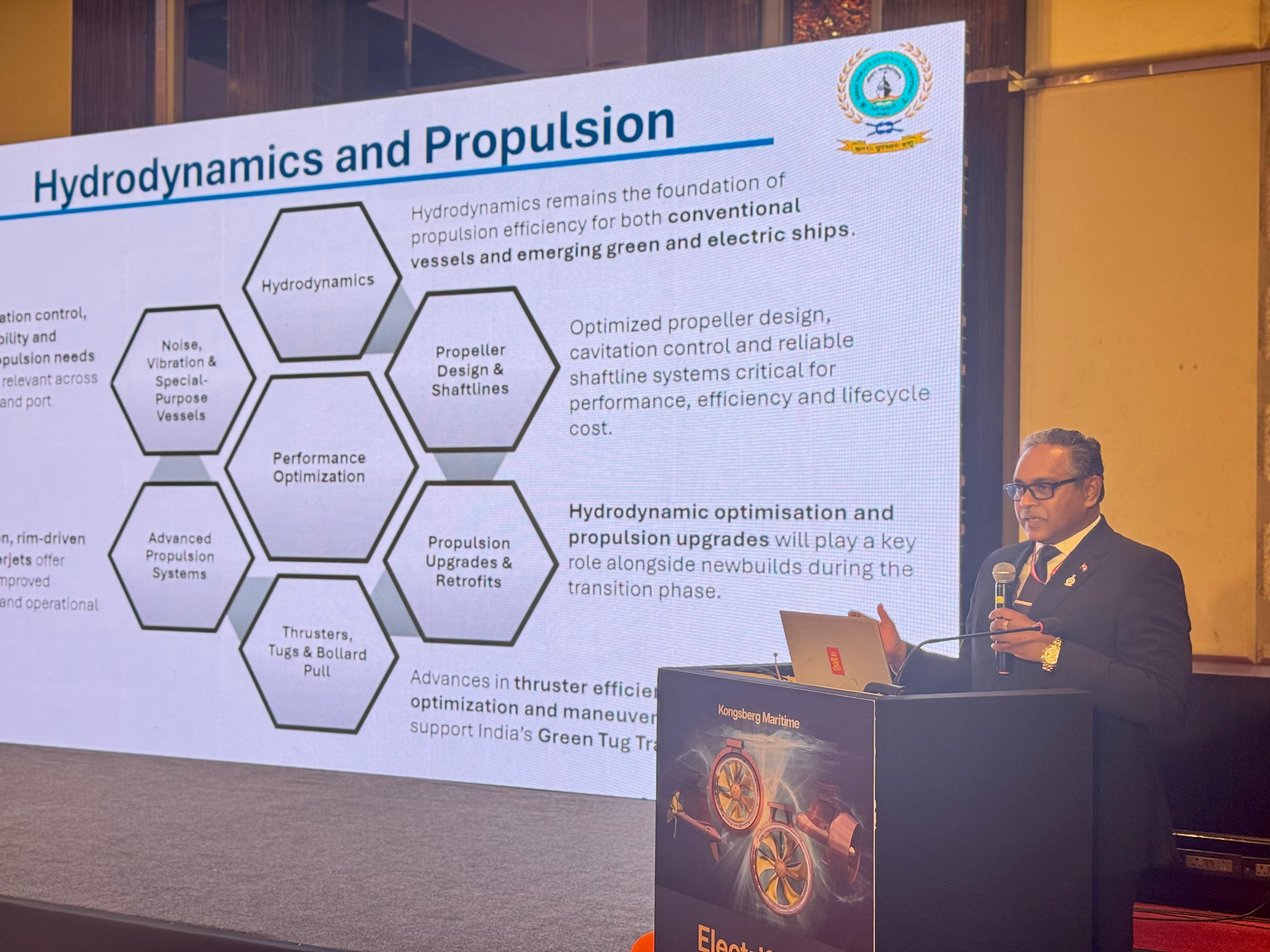 The Directorate General of Shipping participated in the Hydrodynamic & Propulsion Seminar organised by Kongsberg Maritime at Hotel Sofitel, BKC, Mumbai. The seminar convened leading technical experts, naval architects and propulsion specialists to deliberate on emerging advancements shaping vessel performance and efficiency.
