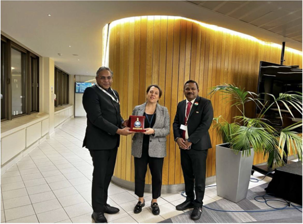 Members of Indian Delegation led by Shri Shyam Jagannathan, IAS, Director General of Shipping, GoI met Dr Rannia Leontaridi, Director General, Aviation, Maritime and Security Group in the Department for Transport at IMO Hqs. After exchange of pleasantries for election of both the Countries to IMO Council various issues were discussed including, Joint security workshop, Search and rescue, MRCC programs, Technical connect, cyber security, No intrusion between contractual obligations between parties, Examination platforms, globally best practices, Seafarers rights issues, Port reception and welfare facilities, Ports and just in time, green ports, Collaboration with Maritime international law, Assist in SPO, JPO at IMO from India, and outreach collaboration with casualty investigation, root cause analysis & lesson learnt reports.